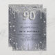 Une invitation moderne, élégante et glamour pour une fête de 90e anniversaire. Un fond argenté factice, orné de poussière de paillettes. Personnalisez et ajoutez votre nom et les détails de la fête. Le numéro 90 est écrit avec une police de caractères de style ballon, script.