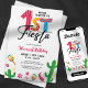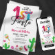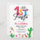 Célébrez le premier anniversaire de votre petite fille avec une fête amusante et festive! Cette invitation colorée présente un mignon cactus et maracas avec un message "Pas de temps pour Siesta" ludique. Parfait pour une fête d'anniversaire de 1er anniversaire.