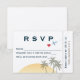 Cette carte d'embarquement vintage Mariage RSVP est conçue pour ressembler à un vieux billet d'avion et décorée avec un avion, des palmiers et un coucher de soleil. Il est montré sur le papier écru feutre. L'invitation de coordination est disponible, et se trouve dans le dans la Collection Mariage Destination Vintage.