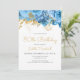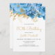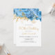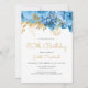 Cette élégante invitation au 80e anniversaire présente une bordure fleurie de fleurs bleu pastel et de feuilles de fausse feuille d'or. . Les mots "80th Birthday" et le nom de l'invité d'honneur apparaissent en écriture manuscrite décontractée de couleur or, le reste du texte personnalisable en caractères sans serif gris charbon. Le design floral est répété à l'envers. Modifiez facilement le texte pour n'importe quel anniversaire d'âge.