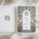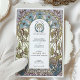Cette élégante faire-part de mariage d'inspiration Art Nouveau présente un agencement délicat de fleurs bleues douces, de violets muets et de feuillage vert complexe, encadré par des accents dorés ornés et des lignes fluides. Le design intemporel reflète le raffinement et le charme du mouvement Art Nouveau avec sa palette harmonieuse de couleurs pastel et ses détails botaniques exquis. Parfait pour les mariages vintages, de jardin ou d'inspiration nature, cette invitation personnalisable offre une touche d'art et d'élégance raffinée pour donner le ton à votre journée spéciale.