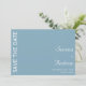 Pastel bleu clair minimaliste côté avant avec script chic et photo inverse personnalisée enregistrer l'invitation de date. Cette carte est facilement modifiable. Si vous avez besoin d'aide pour la personnalisation de ce produit ou si vous avez besoin de plus de produits correspondants pour cette collection, envoyez-moi un message aimable via Zazzle.