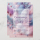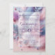 Cette élégante invitation Quinceañera présente un design onirique et fantaisiste. L'arrière - plan présente des plumes pastel douces dans les tons rose, bleu et violet, créant une atmosphère délicate et enchanteresse. Les accents de parties scintillant et les perles apportent une touche de glamour, attirant la lumière et rehaussant l'esthétique générale. Au centre de l'invitation, une zone rectangulaire claire permet une personnalisation complète. Vous pouvez personnaliser le texte avec des détails tels que la date de l'événement, l'heure, l'emplacement et les informations RSVP. Cette conception est parfaite pour célébrer cette étape importante dans la vie d’une jeune femme.