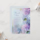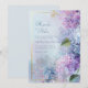 I have envisioned a celebration of soft, ethereal romance with this dreamy botanical composition. This design features lush clusters of lavender and periwinkle hydrangea that appear to float within a misty watercolor wash of violet and sky blue. A sophisticated thin gold frame provides a structured, high-end anchor for the organic blossoms, while delicate golden sprig accents and soft green leaves add a touch of whimsical garden magic. Imagine this atmospheric scenery as the romantic introduction to your whimsical spring wedding suite. It is the premier choice for a garden ceremony, a shabby chic reception, or an upscale outdoor summer event. To truly draw your guests into this tranquil vibe, I suggest printing this on heavyweight pearl shimmer cardstock to emphasize the luminous quality of the watercolor background. Pair it with a lavender envelope and a gold wax seal—it’s not just a wedding detail; it’s a curated heirloom that promises your guests a day of soft enchantment and floral beauty.