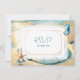 Elégante carte de mariage romantique océanique à thème côtier RSVP mariage. Eau bleu clair sable brun doux avec un dollar de sable sur la plage. Hippocampe et étoiles de mer aquarelle.