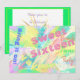 Invitation pour une fête d'anniversaire sur le thème de la plage pour Sweet Sixteen, avec une illustration abstraite pastel pâle, ajoutez vos détails, pour tous ceux qui aiment les vibrations positives, objets personnalisés sur mesure, ambiance estivale de plage et d'océan, palmiers, coquillages, etc.