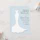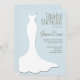 Une invitation à la douche nuptiale bleu pastel avec une silhouette en robe mariage blanche.