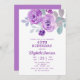 Faites honneur à une femme spéciale avec cette élégante et féminine invitation à la fête d'anniversaire. Cet élégant design présente des fleurs roses violettes d'aquarelle avec des feuilles gris doux. Chaque texte est personnalisable selon vos besoins.