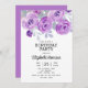 Faites honneur à une femme spéciale avec cette élégante et féminine invitation à la fête d'anniversaire. Cet élégant design présente des fleurs roses violettes d'aquarelle avec des feuilles gris doux. Chaque texte est personnalisable selon vos besoins.