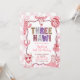 Pastel Retro Sequins Cowgirl 3rd Birthday Invitation, Blush Pink Wavy Gingham Birthday Invite, Editable Coquette Bow Birthday