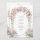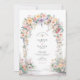 Invite your guests with a soft, romantic fine-art watercolor design featuring an airy floral arch overflowing with blush roses, peach blooms, lilac accents, delicate wildflowers, and fresh sage greenery. The composition frames the text with a light, hand-painted feel; transparent washes, gentle layering, and botanical details that look like a garden illustration on bright white paper.