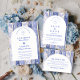 Un design intemporel bleu et blanc inspiré des classiques porcelaines de Delft et des motifs de toile de Jouy française. La bordure de carreaux patchwork combine des florales délicates, des rayures et des motifs ornementaux qui évoquent les céramiques européennes vintage. Un panneau arqué doux au centre garde la mise en page raffinée et élégante tout en permettant aux détails du motif inspiré de la porcelaine de mettre en valeur la célébration avec beauté. Parfait pour les couples qui planifient un mariage sophistiqué bleu et blanc avec un charme européen traditionnel.