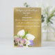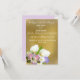 Une faire-part de mariage élégante et élégante au thème pastel et or. Le texte personnalisable est en script élégant contre un arrière - plan or. Cette invitation présente un bouquet de fleurs de mariage en grappe, dont des roses rose pâle, des hydrangées violettes, des lys Calla blancs et des orchidées blanches. Un design simple et élégant pour votre journée spéciale. Lavande et or met en valeur.