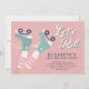 Amusant patinage rose pastel invitation pour toute fête d'anniversaire avec "Let's Roll !" dans un script blanc et une illustration d'inspiration rétro de patins à roulettes turquoises sur une fille portant des chaussettes à tube rose. Ajoutez son nom et son année d'anniversaire en typographie bleue.