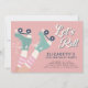 Cool rousse rose roux patinage invitation anniversaire pour n'importe quel âge avec "Let's Roll !" dans un script de style années 70 et une illustration rétro inspirée des patins à roulettes sur une fille portant des chaussettes à tube rose. Ajoutez son nom et son année d'anniversaire dans la typographie bleu turquoise foncé.