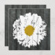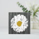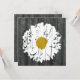 faire-part de mariage avec un arrière - plan de bois d'écorce à l'avant et à l'arrière. L'avant présente une illustration d'une marguerite avec l'effet de la peinture craquelée. Des éléments latéraux assortis au carré de peinture craquelé blanc. Personnalisez avec les détails de votre événement. L'expression est celle de la mariée et du marié avec les parents.
