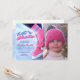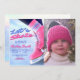Faites de l'anniversaire hivernal de votre enfant un moment inoubliable avec cette invitation unique pour le patinage sur glace. La conception de l'invitation est mise en valeur par une illustration numérique de chaussures et de pantalons de patinage à glace tendance avec des arbres enneigés et des montagnes en arrière-plan.