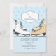 Une invitation sportive hivernale pour célébrer un anniversaire sur la glace. Convient aux garçons et aux filles. L'arrière - plan bleu clair présente des étoiles et des patins blancs et bronzés.