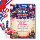 Patriotic invitation honoring America’s 250th birthday! Designed with a vibrant 4th of July theme, this eye-catching invite features classic red, white, and blue elements. Perfect for backyard barbecues, community gatherings, fireworks parties, or family celebrations.