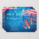 Commencez votre quatrième de célébration de juillet outre de la droite avec nos feux d'artifice américains rouges, blancs et bleus avec une invitation moderne de partie de drapeau américain. Renversez notre invitation du 4 juillet de regarder plus d'un dos assorti pour un contact spécial supplémentaire. L'invitation populaire pour un quatrième de réception au bord de la piscine de juillet, barbecue, feux d'artifice party, barbecue ou fête d'anniversaire du 4 juillet.