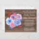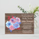 Le faire-part de mariage parfait pour tout mariage de juillet ou patriotique ! Fleur rouge, blanc et bleu et arrière - plan rustique en bois. Veuillez me contacter si vous désirez de l'aide pour customiser ce faire-part de mariage.