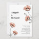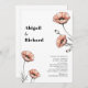 Vintage Pink poppies faire-part de mariage fleuri fleur sauvage avec code QR. Cette invitation rend hommage à l'amour des fleurs sauvages, avec des croquis délicats d'inspiration vintage de pavots roses qui fleurissent dans les coins supérieur droit et inférieur gauche. Le détail artistique fournit un cadre magnifique pour les informations clés, avec les noms du couple à venir mis en valeur en typographie audacieuse, créant un point focal frappant. Et pour plus de commodité, le revers de l'invitation comprend un code QR, permettant à vos invités de scanner et RSVP en ligne facilement, ainsi que d'accéder à plus de détails sur votre mariage.