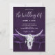 Ces modèles de carte à plat rustique ouest unique 5x7 faire-part de mariage, vous pouvez customiser dispose d'un rodéo cowgirl taureau crâne de vache noir violet blanc de la texture pays arrière - plan design. Grange de style vintage vieux sauvage ouest inspiré cool ancien, design d'animaux de ferme tendance. En ligne rsvp sur le dos. Copyright de l'image Marg Seregelyi Photography.