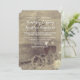 L'invitation rustique au mariage campagnard comprend un couple de fer à cheval, un vieux burlap, des fleurs et du champagne.
