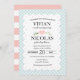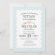 faire-part de mariage d'inspiration vintage avec motif de bébé bleu et blanc en vichy comme arrière - plan. Blanc doily, typographie moderne, polices manuscrites. Illustré de coeurs roses et de fleurs blanches. Idéal pour les mariages du printemps ou de l'été à la campagne. Arrière - plan avec grand rayures rose et blanc. ***VEUILLEZ NOTER que si vous modifiez la police ou la taille de la police, cela peut modifier la façon dont votre invitation imprime. Il imprime la façon dont vous la voyez sur votre écran. Je ne verrai pas votre carte une fois que vous l'aurez commandée, et Zazzle ne modifiera rien (typos, alignement, etc.). Illustré ici dans le document de base
