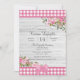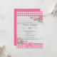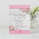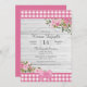 Elégant design floral et en vichy rose champêtre sur un arrière - plan en bois blanc pour une soirée champêtre, rustique ou chic et désuète. Customisez cette invitation baby shower avec vos propres nom, adresse, date et registre.