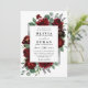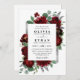 Le design présente des pivoines aquarelles et des éléments floraux roses dans les tons rouge et bordeaux sur la végétation botanique d'eucalyptus. Le modèle est également doté d'un coffret imprimé en argent ou en gris pour une mise en page élégante. La typographie affiche une disposition moderne avec du texte noir. Affichez le lien de collection sur cette page pour rechercher les produits correspondants dans le jeu de mariages.