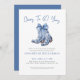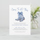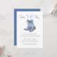 Quelque Chose De Bleu Avant Moi ! Élégante Invitation à la douche nuptiale Cowboy Boot. Célébrez la future mariée avec une touche de charme et de sophistication. Cette invitation présente une paire de bottes de cowboy bleues fantaisie en haut, ornée d'un grand arc en aquarelle. Les bottes sont décorées d'une motif d'inspiration florale ou chinoiserie, ajoutant une touche élégante au thème rustique. L'expression "Quelque chose de bleu avant moi !" est écrite dans un mélange élégant de polices bleu foncé et gris, combinant écriture manuscrite et typographie serif classique pour une sensation polie et moderne. Parfait pour les douches nuptiales sur le thème de la campagne ou du cowboy, ce design est suffisamment polyvalent pour tous les environnements, des fêtes de grange rustique aux rassemblements cosy. Le dos de la carte est doté d’un riche arrière - plan bleu foncé, qui peut être customisé pour correspondre à la palette de couleurs de votre événement. Entièrement personnalisable, vous pouvez ajuster le texte, les polices et les couleurs pour refléter le style unique de la mariée. Disponible sous forme de carte imprimée ou de fichier numérique téléchargeable, cette charmante invitation est un moyen agréable de donner le ton de votre célébration spéciale.