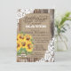 Modèle rustique de carte de douche nuptiale occidentale avec bouquet de tournesol en pot de mason enveloppé dans burlap, dentelle, dentelle twine et blanche sur des planches de bois vieilli.