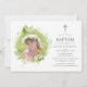 Baptême de forêt sauvage, baptême de baptême ou invitation à la dédicace mettant en vedette des fougères, des fleurs sauvages et des fraises et un arrière - plan de lessive verte sauge. Une photo en forme de portrait est conseillée. Une photo en forme de carré est conseillée.