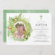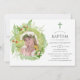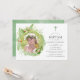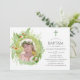 Baptême de forêt sauvage, baptême de baptême ou invitation à la dédicace mettant en vedette des fougères, des fleurs sauvages et des fraises et un arrière - plan de lessive verte sauge. Une photo en forme de portrait est conseillée. Une photo en forme de carré est conseillée.