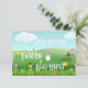 Rejoignez-nous pour la chasse aux œufs de Pâques. Carte d'invitation à une fête avec un paysage de Pâques graphique. Personnalisez les deux côtés avec les détails de votre fête.