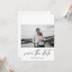Faites plaisir à vos invités pour votre mariage en envoyant un paysage photo moderne & chic Enregistrer la carte de date avec votre photo et calligraphie moderne. Voir notre collection de faire-part de mariage photo pour plus de styles ou d'orientations photo.