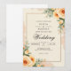 De délicieuses fleurs de pêche et un feuillage vert doux encadrent ce design romantique avec une atmosphère chaleureuse et vintage. L'effet de lavage aquarelle ajoute une touche artistique subtile, parfaite pour une célébration douce et d'inspiration nature.