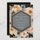 Delicate peach, cream, and slate grey blooms intertwine with deep, dark foliage in this enchanting design. Evokes a feeling of sophisticated romance with a touch of natural artistry. Perfect for a refined, elegant occasion.