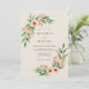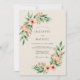 This design showcases delicate watercolor peach blossoms and soft sage green foliage set against a warm cream background. The aesthetic is romantic and serene, capturing the essence of a blossoming meadow. Sprays of wild roses and eucalyptus leaves create a natural and elegant floral arrangement.