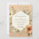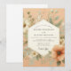 Evoke a sense of gentle romance with this beautifully artistic floral design. A warm peach background sets the stage for a lush arrangement of soft-focus blossoms in creamy ivory and apricot hues. Delicate sage green leaves and budding stems are rendered in a painterly style, creating an elegant and ethereal atmosphere.