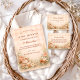 A romantic western baby shower design framed with soft blush and ivory florals, muted sage greenery, and warm terracotta blooms. Delicate pampas accents surround a refined arched layout, while classic cowgirl boots add a subtle rustic statement at the base. The neutral parchment background keeps the look elegant and timeless, blending country charm with modern boho style. Fully customizable for names and event details—perfect for a western, cowgirl, ranch, or desert-inspired celebration.