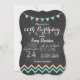 Personnalisez cet élégant drapeau à la pêche et à la menthe vert rétro et rayures motifs chevron, tableau noir vintage, craie, look ado ou adulte invitation fête d'anniversaire. Idéal toute l'année pour les fêtes d'anniversaire de printemps, d'été, d'automne ou d'hiver. Design neutre et tendance pour homme ou femme, garçon ou fille. Invitation élégant et classe pour tout âge adulte ou ado important, y compris Sweet 16, 18th, 21th, 30th, 40th, 50th, 60th, 70th, 75th, 80th, 85th, 90th, 95th, 95, 100th anniversaire.