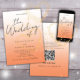 Invitation Peach Orange Fuzz Script Elegant QR Code Mariage
