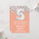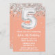 Peach and silver 5th anniversaire invitation à la fête de 5 ans invitation à la fête de 5 ans avec parties scintillant et écriture de script moderne et ballons amusants en feuille de papier.
