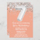 Peach and silver 7th anniversaire invitation à la fête de 7 ans invitation à la fête de 7 ans avec parties scintillant et écriture de script moderne et ballons de papier amusant.
