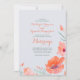 Fleurs d'aquarelle romantique faire-part de mariage avec fleurs de pêche et petites branches feuilles. Jolie et décontractée typographie manuscrite faire-part de mariage pour jardin ou mariage extérieur d'été avec arrangements de fleurs de pêche.