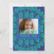 Personnalisable Carte de remerciements d'anniversaire ! Ce magnifique design inspiré de plumes de paon est offert en couleurs vives - bleu et aqua. Entre les magnifiques plumes de queue d'oiseau paon est une zone encadrée pour un contenu personnalisable. Sur le devant il y a une photo et un texte, à l'arrière il y a de l'espace pour un message personnel de remerciement et d'appréciation.
