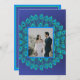 INVITATION PEACOCK FEATHER MOTIF PATTERNEL BLEU VERT