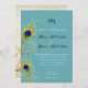 Invitation Peacock Feathers Turquoise Bleu Élégant Mariage In